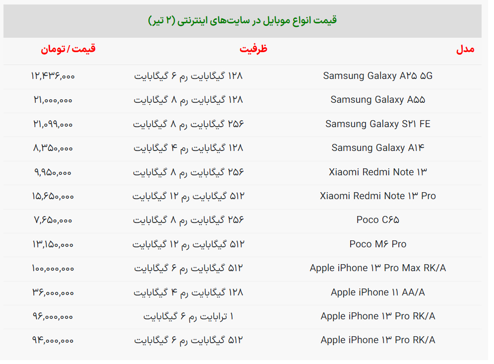 اگر میخواهید از قیمت انواع گوشی آیفون و مدلهای دیگر شیائومی و سامسونگ مطلع شوید، جدولی را که آماده کردهایم بخوانید.