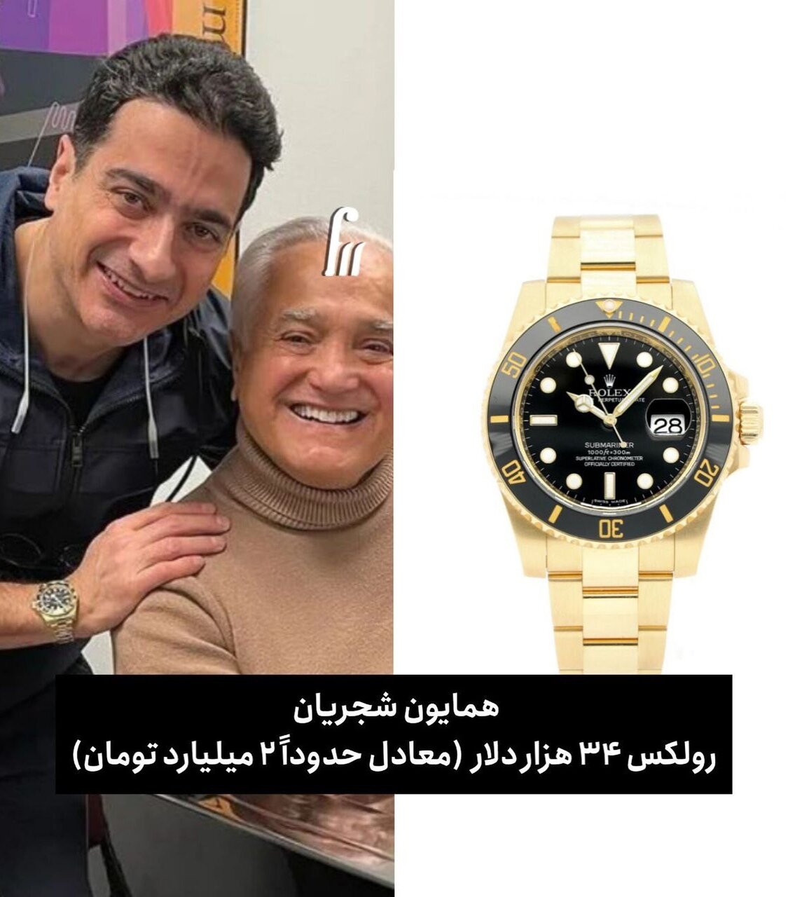 قیمت ساعت رولکس همایون شجریان ۳۴ هزار دلار معادل ۲ میلیارد تومان است.