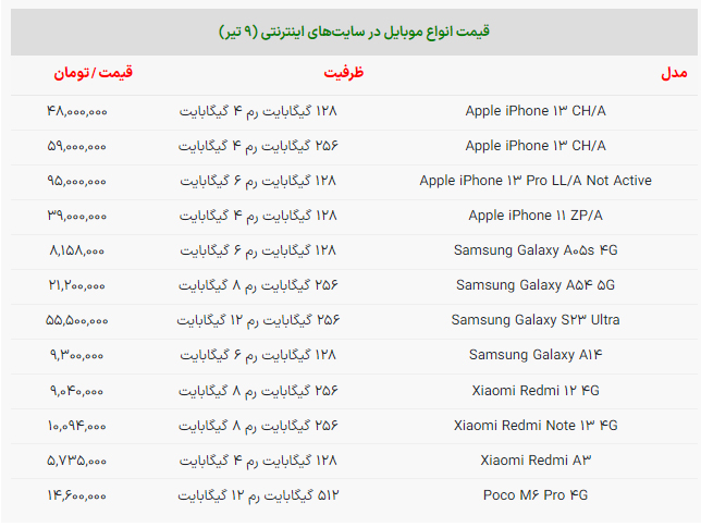 | Galaxy S24 Ultra | حدود 65 میلیون تومان |