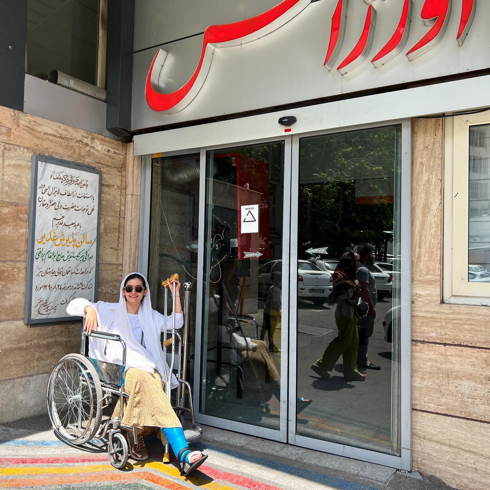 تصویری از پردیس احمدیه، بازیگر مشهور منتشر شده که نشان میدهد این هنرمند دچار سانحه شده و ویلچرنشین شده است.