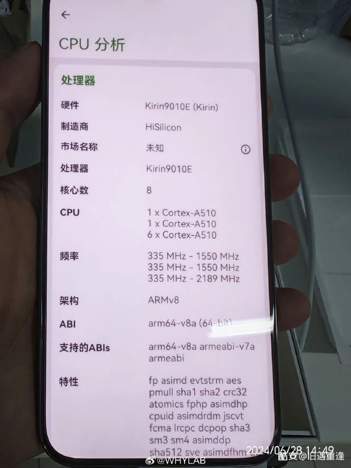 WHYLAB یک افشاگر فناوری اخیراً چند پست در میکروبلاگ ویبو جزئیات بیشتری درباره دستگاه جدید فاش کرده است. طبق پست‌های این افشاگر Huawei Pura ۷۰ Satellite SMS Edition دارای تراشه Kirin۹۰۱۰E است. این درحالی است که در موبایل پورا ۷۰ اولیه از تراشه Kirin۹۰۰۰S۱ استفاده شد.