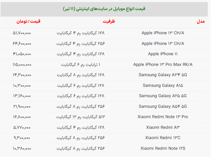 اگر میخواهید از قیمت انواع گوشی موبایل مطلع شوید، جدولی را که آماده کردهایم بخوانید.