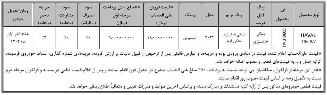 شرایط طرح فروش فوری هاوال H6 تیر 1403: