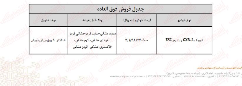 متقاضیان ثبت نام سایپا می‌توانند نسبت به ثبت نام کوییک به قیمت کارخانه اقدام کنند. موعد تحویل سایپا مربوط به 90 روز دیگر است.
