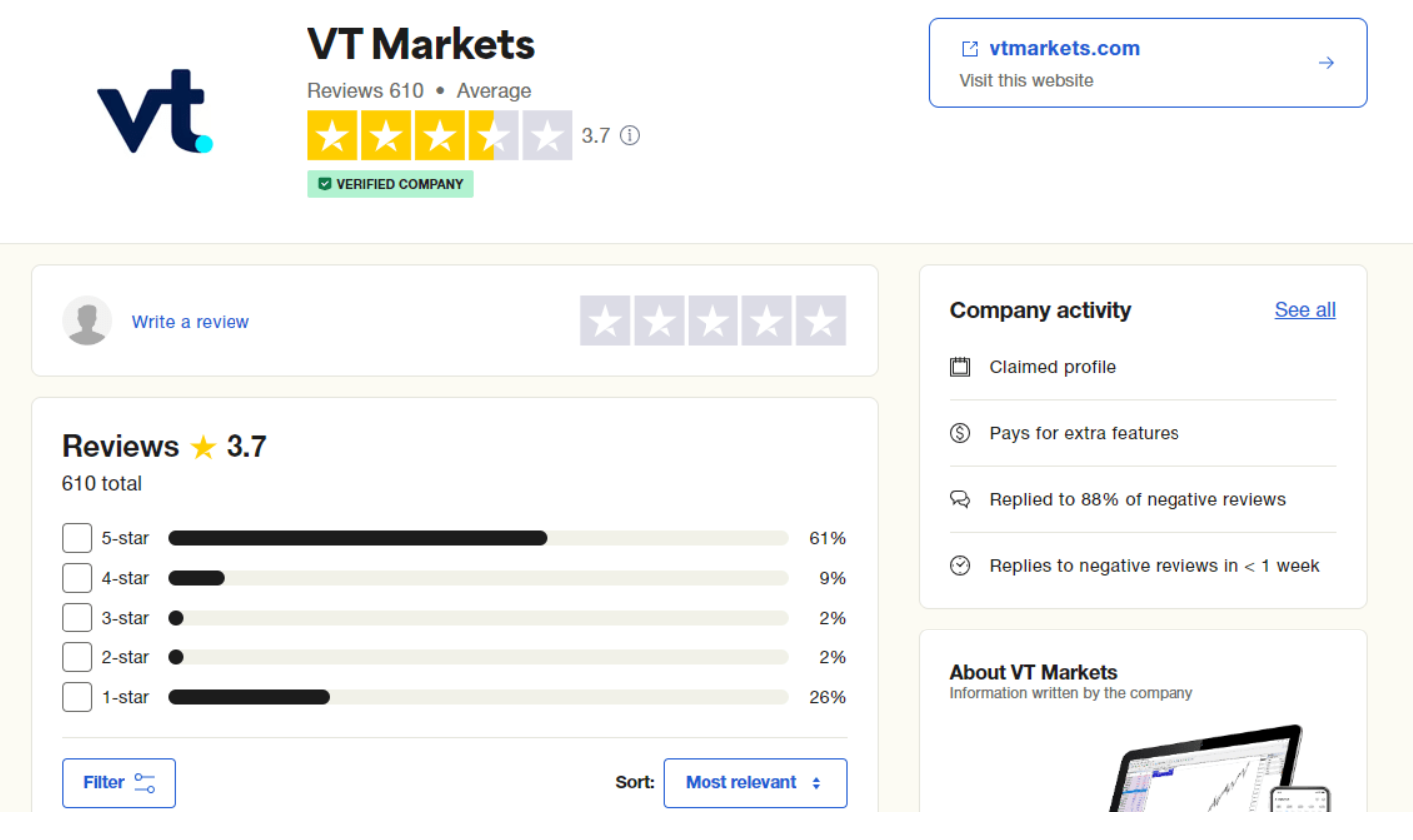 بررسی اعتبار بروکر وی تی مارکتس در سایت Trust Pilot
