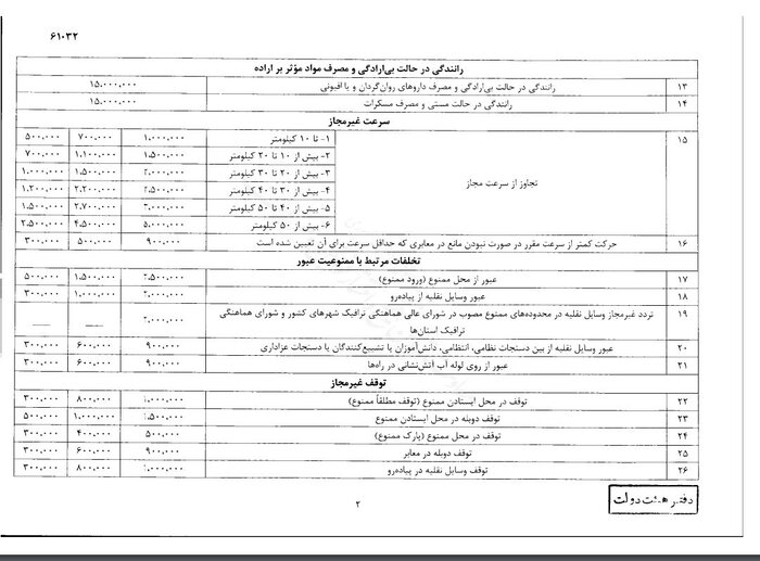 بر همین اساس جریمه تخلف «حرکت با دنده عقب در آزادراه ها و بزرگراه ها»، در کلان شهرها، مراکز استان ها، جادههای بین شهری، مناطق آزاد تجاری-صنعتی و سایر شهرها ۵۰۰ هزار تومان پیش بینی شده است.
