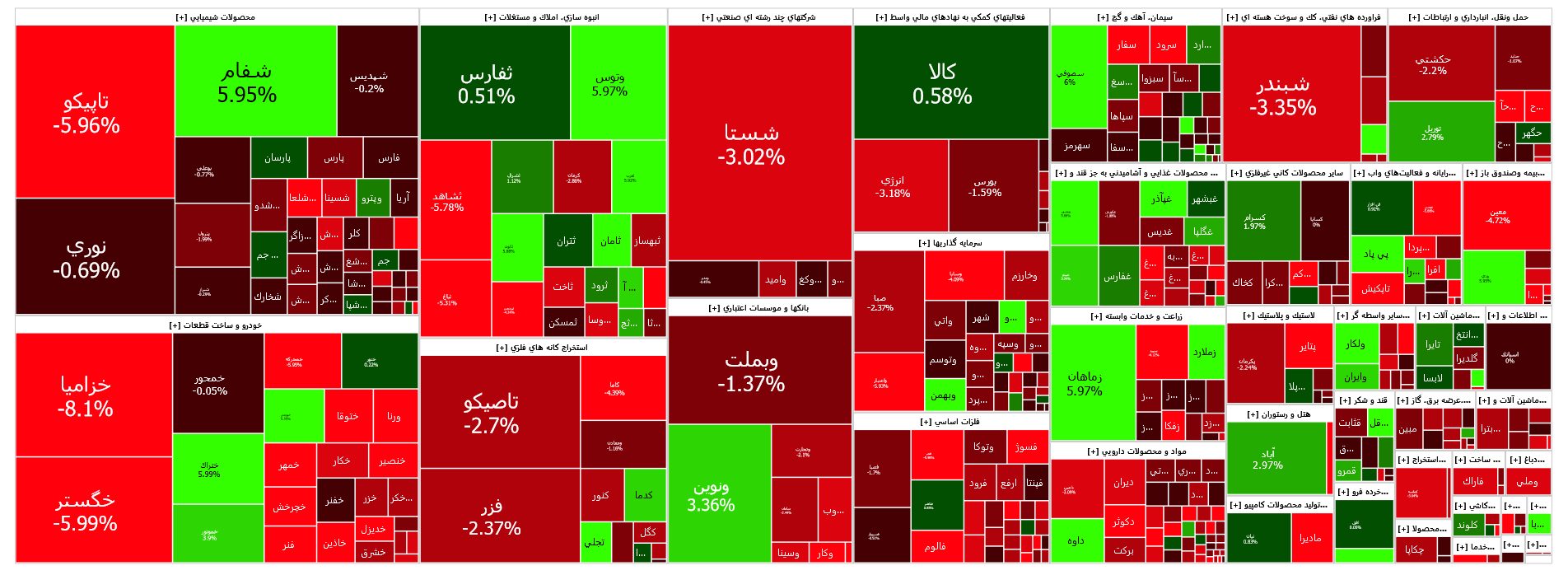 در مقابل نماد‌های ونوین و کالا بیشترین تاثیر مثبت را بر شاخص کل بازار سهام برجای گذاشتند.