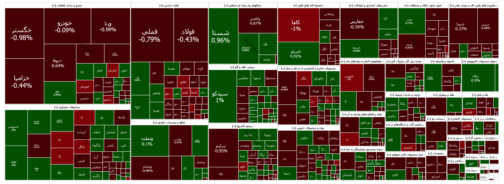 در مقابل نماد‌های فملی و فارس بیشترین تاثیر منفی را بر شاخص کل بازار سهام برجای گذاشتند.