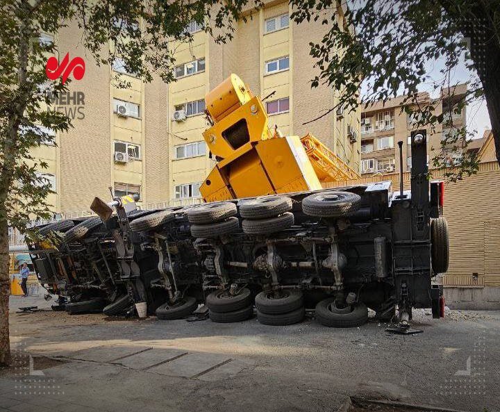ماجرای سقوط جرثقیل در خیابان حافظ تهران + عکس