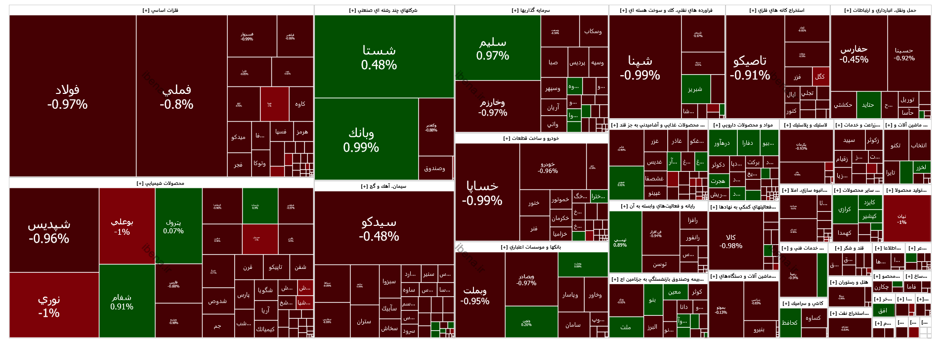 در این روز به ترتیب نمادهای فملی، فولاد، نوری و فارس بیشترین تاثیر منفی را بر شاخص کل بازار سرمایه داشتند و عامل افت بازار سرمایه شدند.