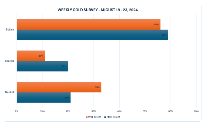 در این هفته، 9 تحلیلگر در نظرسنجی Kitco News Gold شرکت کردند و اکثریت وال استریت همچنان پتانسیل افزایش بالاتر از بالاترین رکورد این هفته را مشاهده کردند. پنج کارشناس، معادل 56 درصد، انتظار دارند که قیمت طلا در هفته آینده افزایش یابد، در حالی که سه تحلیلگر، معادل 33 درصد، بر این باورند که طلا هفته آینده سود خود را تثبیت خواهد کرد. تنها یک نفر، که 11 درصد از کل را تشکیل می دهد، کاهش قیمت این فلز گرانبها را پیش بینی کرد.