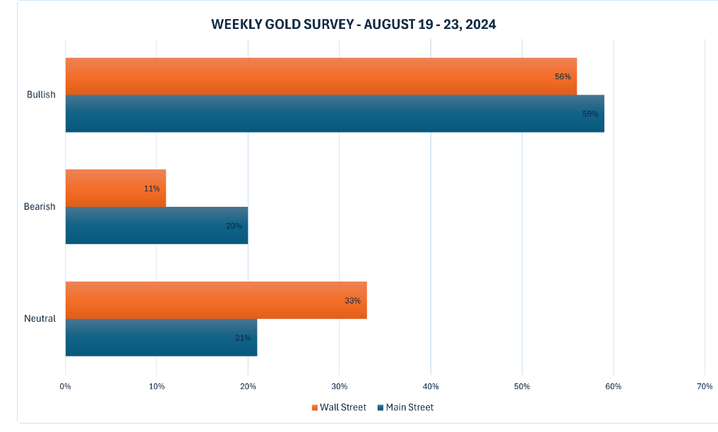 در همین حال، 219 رأی در نظرسنجی آنلاین کیتکو ثبت شد. 130 معامله‌گر خرد یا 59 درصد اعلام کردند قیمت طلا در هفته آینده افزایش می‌یابد. 44 نفر دیگر یا 20 درصد انتظار داشتند که فلز زرد کاهش یابد، در حالیکه ۴۵ پاسخ‌دهنده که نماینده 21 درصد باقی‌مانده هستند، قیمت‌ها را در هفته آینده بدون تغییر پیش‌بینی کردند.