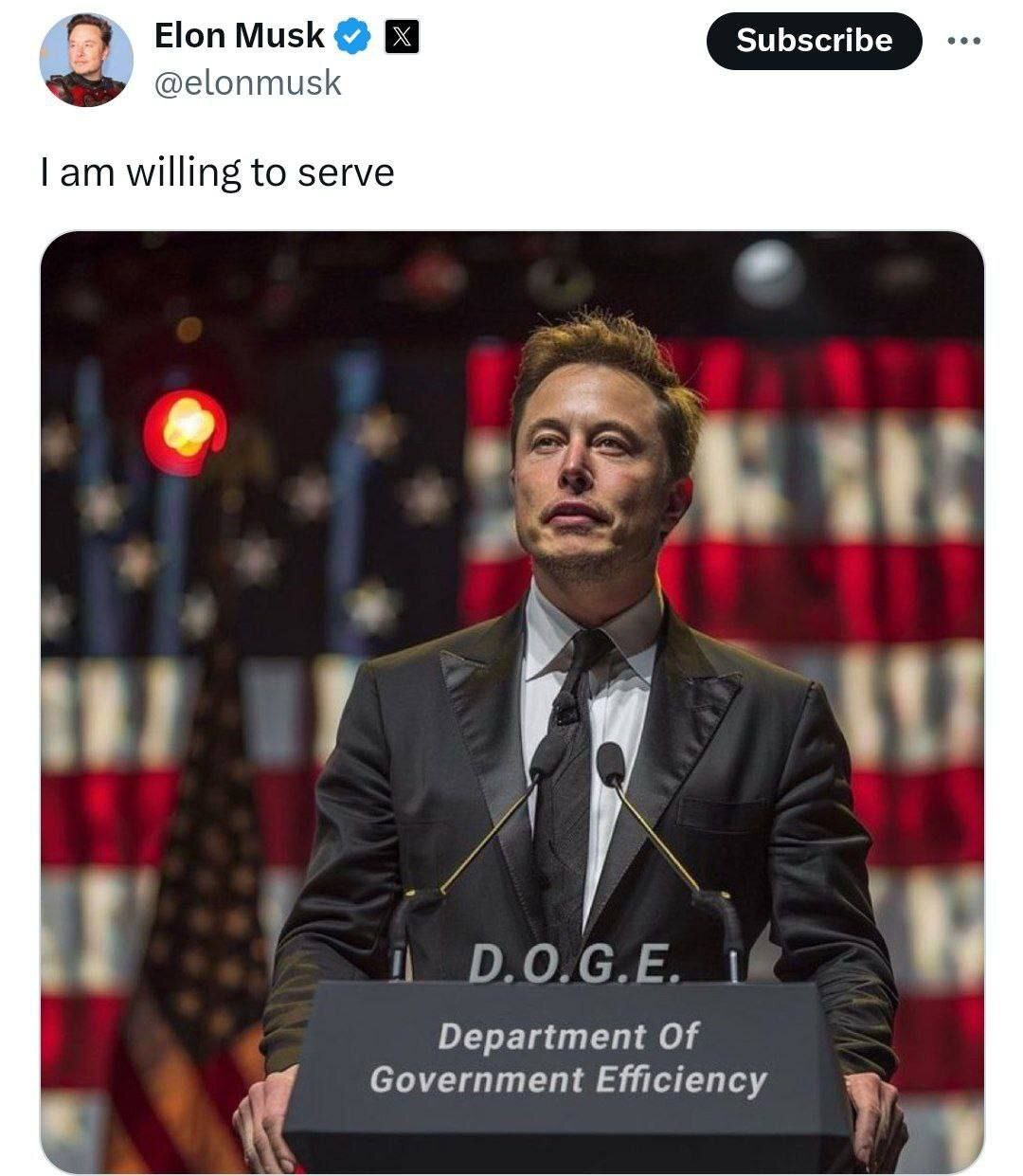 ایلان ماسک، از سرمایه داران بزرگ دنیا و همچنین از حامیان سر سخت دونالد ترامپ در انتخابات آمریکا به پیشنهاد ترامپ برای کسب مقام دولتی پاسخ مثبت داد.