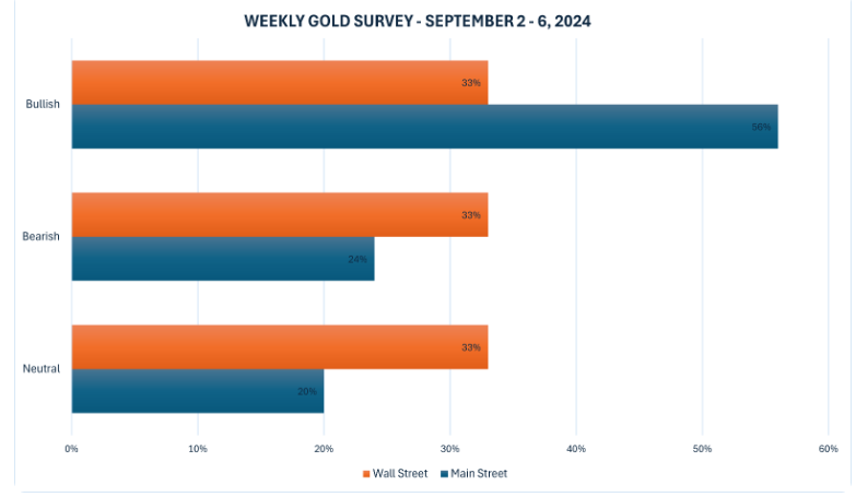 در همین حال، 199 رای در نظرسنجی آنلاین کیتکو به صندوق انداخته شد که سرمایه‌گذاران همچنان صعودی بودند، اما کمتر از نظرسنجی هفته گذشته. 112 خرده فروش یا 56 درصد به دنبال افزایش قیمت طلا در هفته آینده بودند. 47 یا 24 درصد دیگر انتظار داشتند که فلز زرد کمتر معامله شود، در حالی که 40 پاسخ دهنده، که 20 درصد باقی مانده را نمایندگی می کنند، شاهد تثبیت قیمت ها در هفته پیش رو بودند.