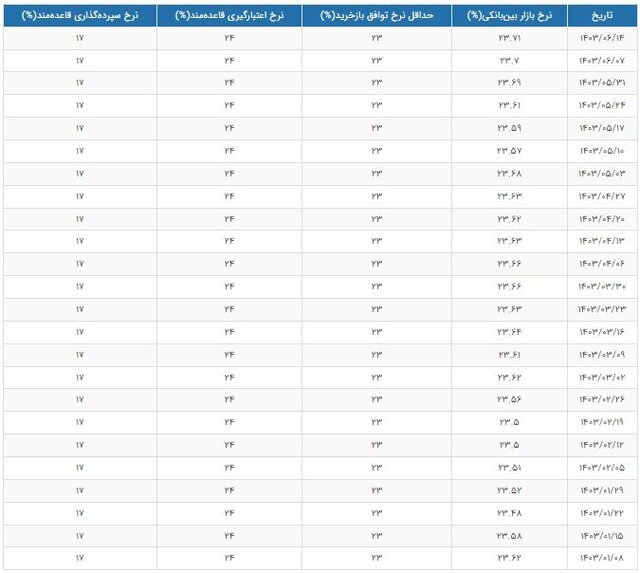 نرخ بهره بین بانکی تغییر کرد + جدول