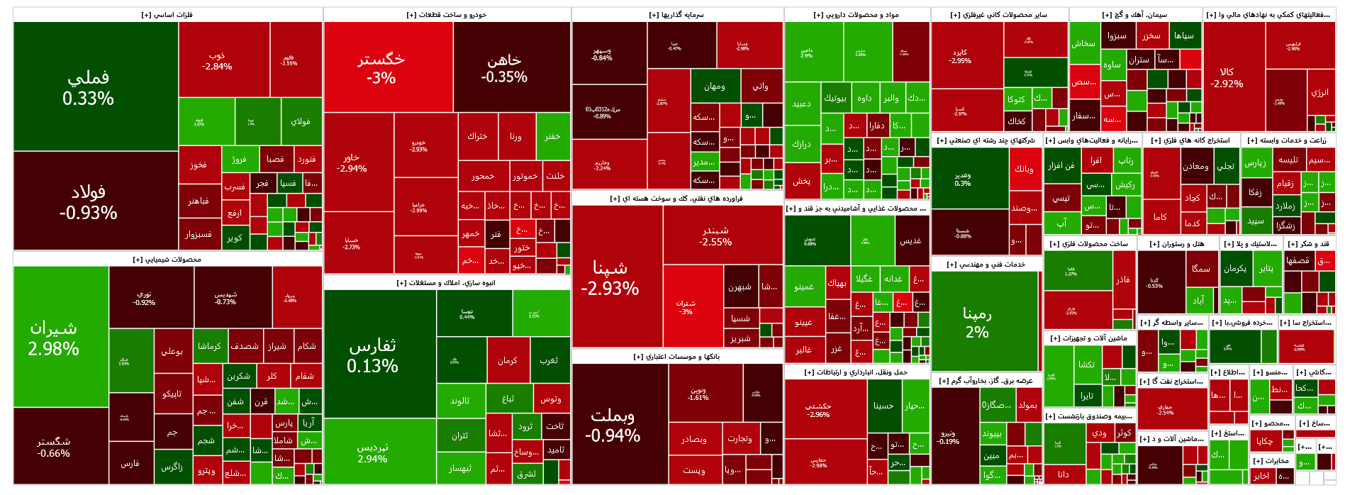 در این روز به ترتیب نمادهای فولاد، شپنا، شبندر و حکشتی بیشترین تاثیر منفی را بر شاخص کل بازار سرمایه داشتند و عامل افت بازار سرمایه شدند.