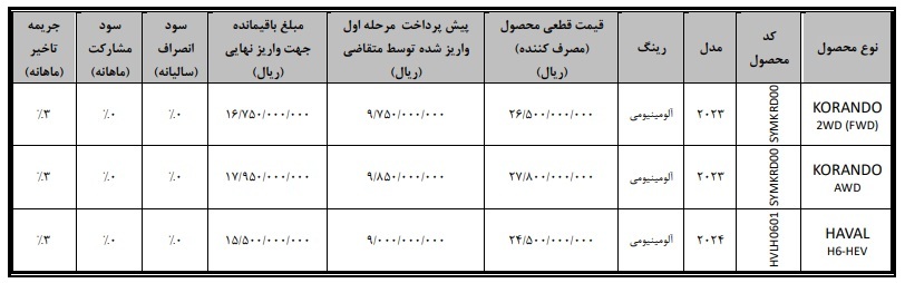 به گزارش سایت طلا، شرایط طرح فروش هاوال H6 و کوراندو شهریور 1403 اعلام شد.