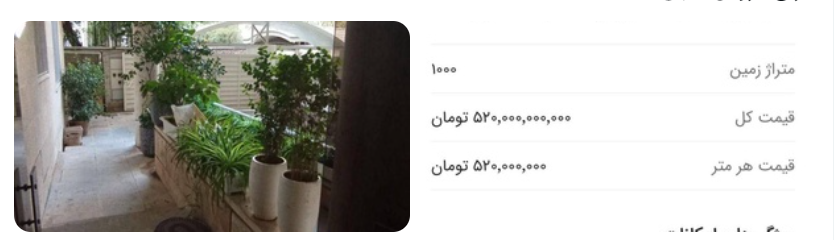 به گزارش سایت طلا،ویلایی در نزدیکی بوستان سنبل محله فرمانیه که ۳۰ سال پیش ساخته شده با قیمت ۵۲۰ میلیارد تومان در یکی از سکوهای فروش اینترنتی مسکن برای فروش آگهی شد.