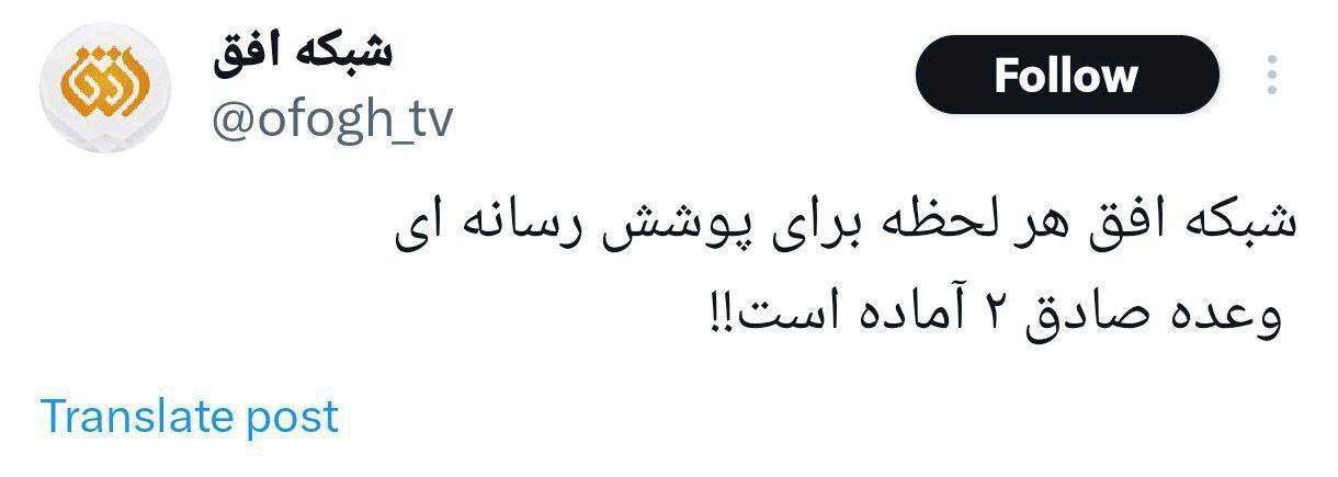 همچنین شبکه افق در توییتر نوشته است: «وعده صادق ۲ آماده است!!»