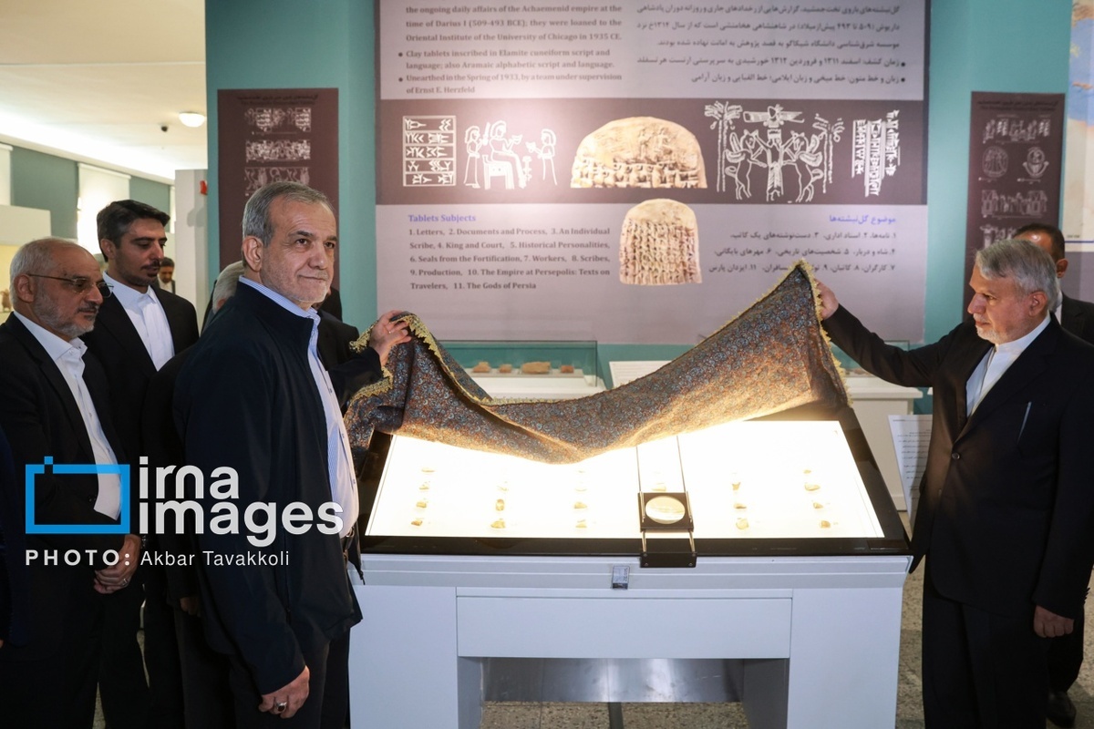 مسعود پزشکیان صبح امروز سهشنبه با حضور در محل موزه ملی ایران ضمن بازدید با مدیران وزارت میراث فرهنگی، گردشگری و صنایع دستی و نیز جمعی از فعالان این حوزه، از بخشی از الواح هخامنشی بازگردانده شده به کشور که قرار است از فردا در دید عموم قرار گیرد، رونمایی کرد.