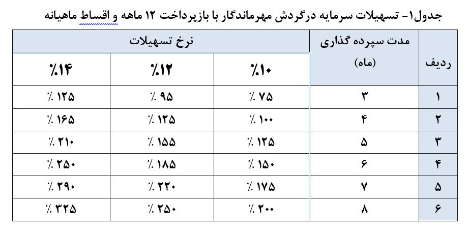 دریافت کننده وام با دوره بازپرداخت ۱۲ماهه و نرخ سود ۱۰ درصد، ماهانه ملزم به بازپرداخت ۲۶ میلیون و ۳۷۴ هزار تومان قسط با بانک است.