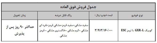 شرایط فروش فوق العاده خودرو کوییک GXR-L ویژه مهر ۱۴۰۳ اعلام شد.