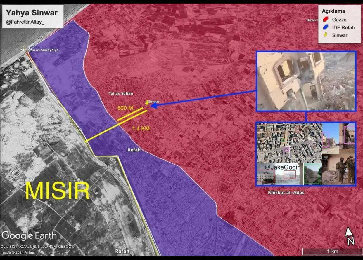 محل استقرار شهید سنوار چند متر با مناطق عملیاتی صهیونیستها در رفح فاصله داشت