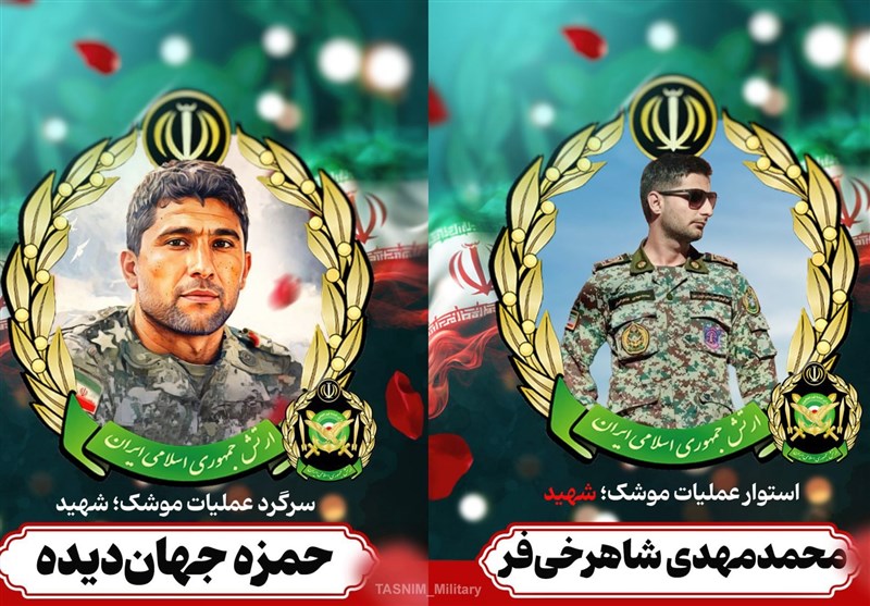 ارتش جمهوری اسلامی ایران در راستای دفاع از حریم امنیت ایرانزمین و جلوگیری از آسیب به ملت و منافع ایران دو تن از رزمندگان خود را در شب گذشته حین مقابله با پرتابههای رژیم جنایتکار صهیونیستی فدا نمود.