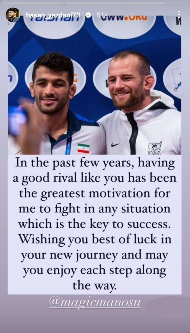 چهره شاخص و عنوان دار کشتی ایران به خداحافظی مهمترین رقیب دوران حرفه ای خود از دنیای کشتی واکنش نشان داد.