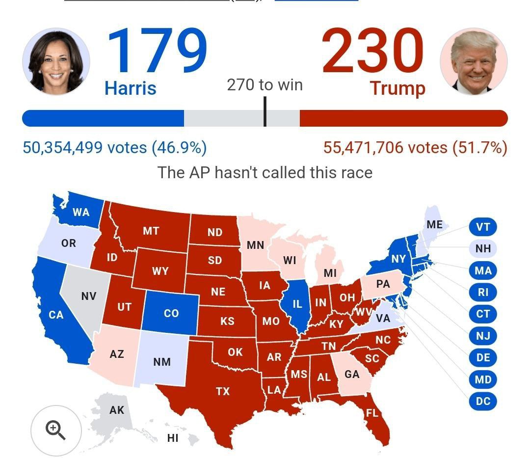 به گزارش سایت طلا، بر اساس تازه ترین نتایج شمارش آرا در آمریکا ، دونالد ترامپ پیشتاز است.