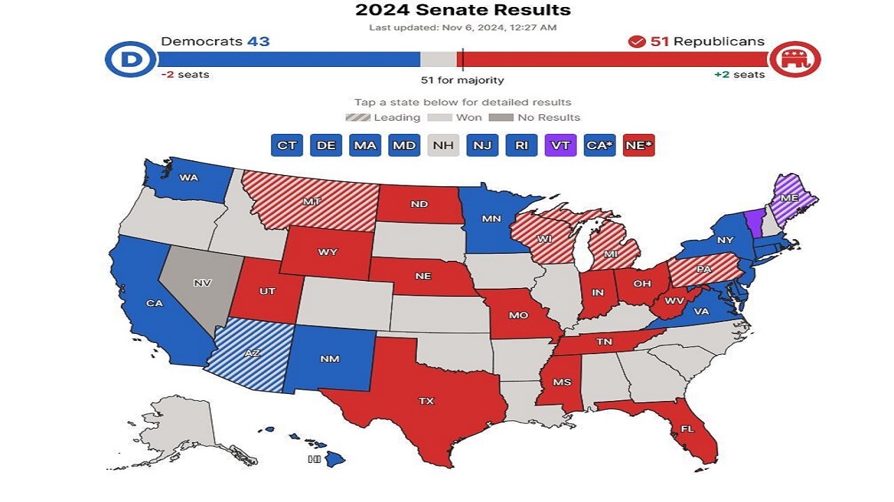 جمهوریخواهان با کسب ۵۱ کرسی در سنای آمریکا، اکثریت این مجلس را از آن خود کردند.