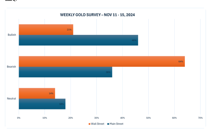 این هفته، 14 تحلیلگر در نظرسنجی Kitco News Gold شرکت کردند و فروش شدید این هفته، برتری وال استریت را به سمت چشم انداز نزولی سوق داد. تنها سه کارشناس یا 21 درصد انتظار داشتند که قیمت طلا در هفته آینده افزایش یابد، در حالی که 9 تحلیلگر یا 64 درصد کاهش قیمت این فلز گرانبها را پیش بینی کردند. دو تحلیلگر باقیمانده، که 14 درصد از کل را تشکیل می دهند، انتظار دوره تثبیت طلا را داشتند.