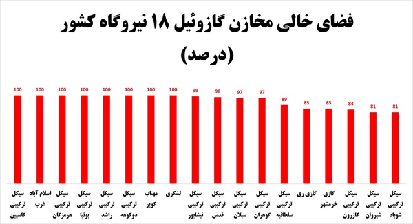 به گزارش سایت طلا،بیش از ۸۰ درصد ذخایر گازوئیل ۱۸ نیروگاه گازی و سیکل ترکیبی ایران خالی شده و ۱۰.۵ هزار مگاوات از ظرفیت تولید برق کشور در آستانه خاموشی قرار داد. این میزان نیاز انرژی خانگی، صنعتی، کشاورزی، اداری و تجاری ۱۹ میلیون نفر است.
