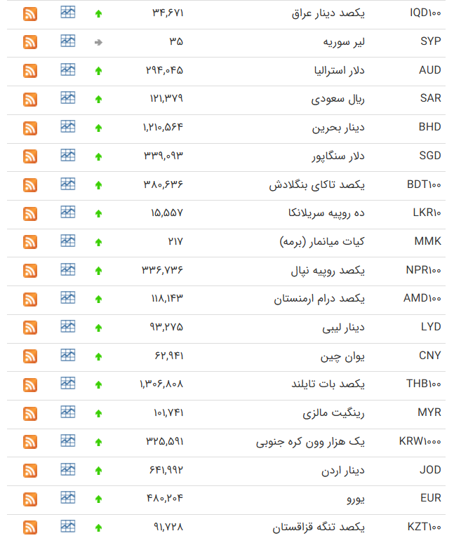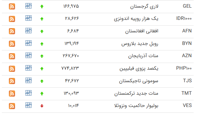 از سوی دیگر اسکناس درهم امارات نیز با افزایش 14 هزار و 95 تومان ارزش‌گذاری شده و نرخ حواله درهم نیز 13 هزار و 724 تومان است