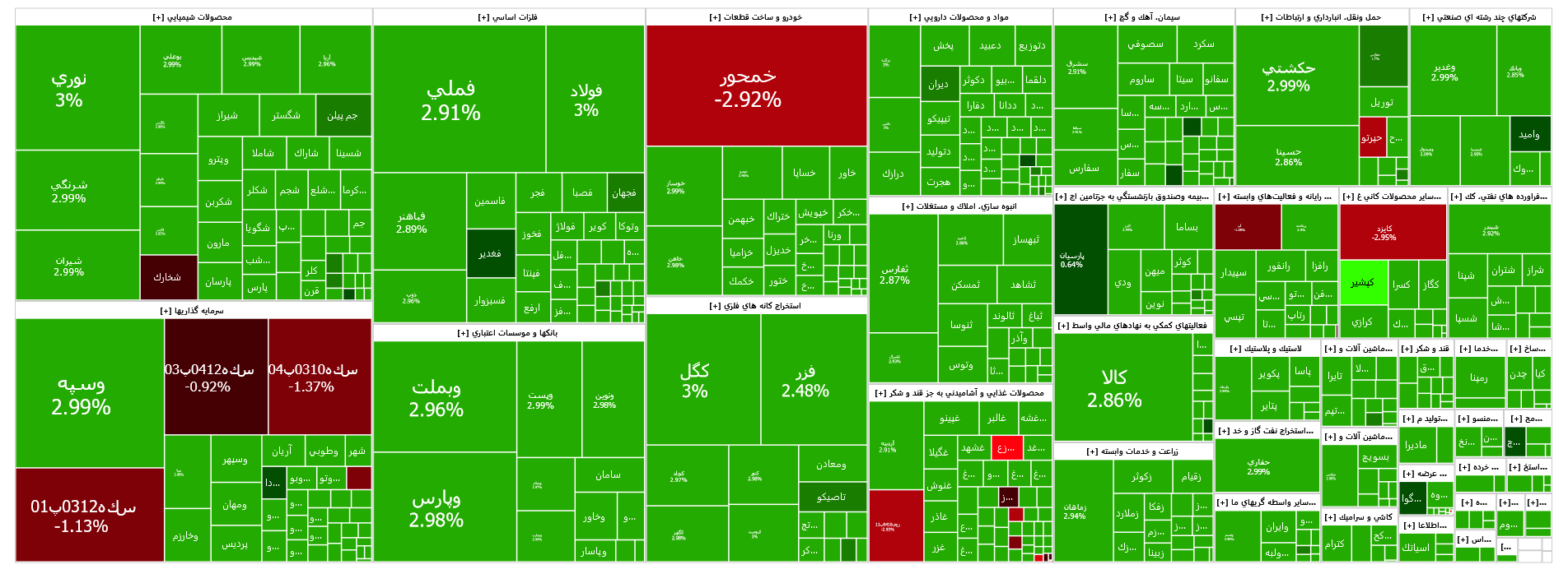 در مقابل نماد‌های خمهر و فولاژ بیشترین تاثیر منفی را بر شاخص کل بازار سهام برجای گذاشتند.