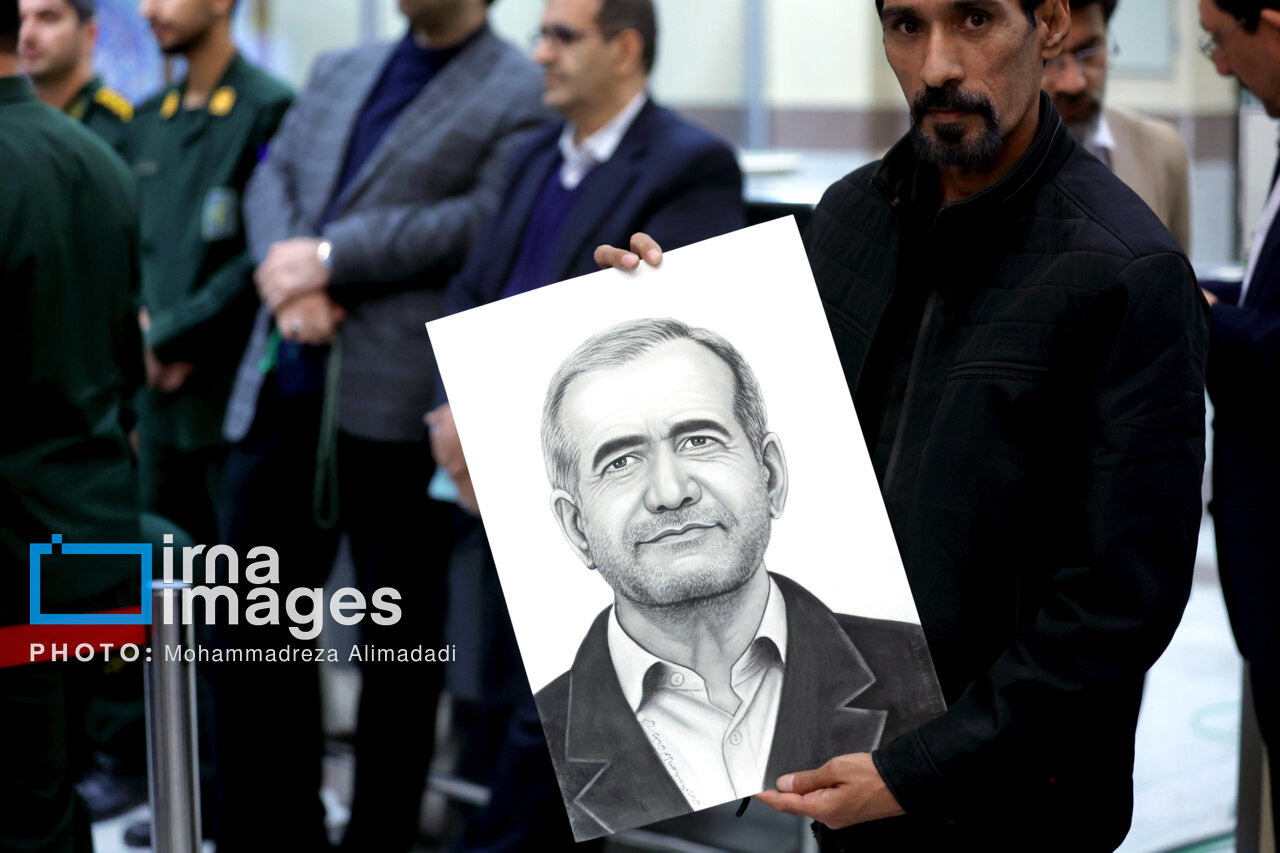 یکی از اهالی استان سیستان و بلوچستان نقاشی از رئیس جمهوری کشورمان را در جریان سفر پزشکیان به این استان در دست گرفته بود.