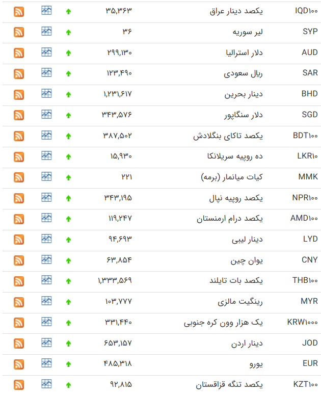 از سوی دیگر اسکناس درهم امارات نیز با افزایش 14 هزار و 487 تومان ارزشگذاری شده و نرخ حواله درهم نیز 14 هزار و 92 تومان است