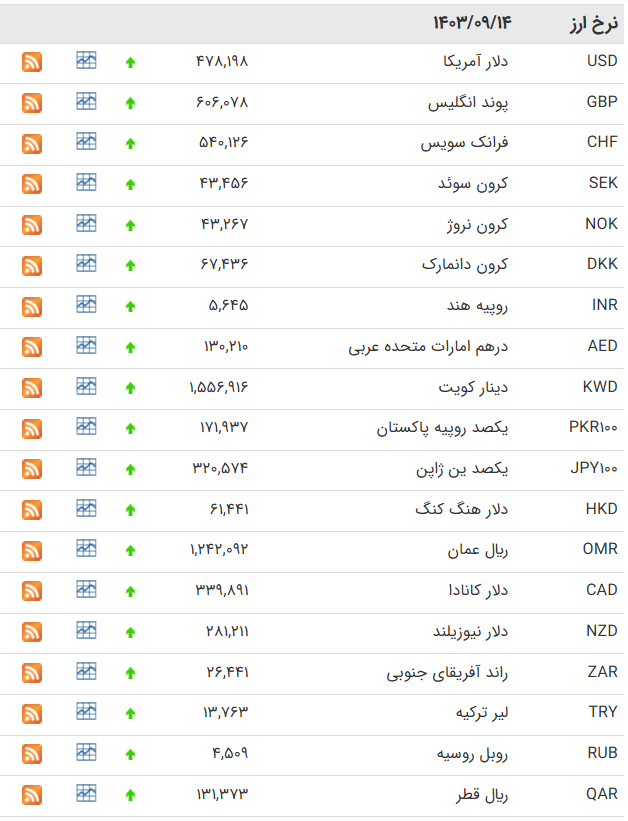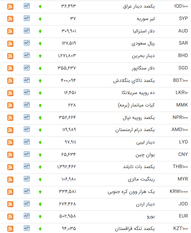 از سوی دیگر اسکناس درهم امارات نیز با افزایش 14 هزار و 793 تومان ارزشگذاری شده و نرخ حواله درهم نیز 14 هزار و 390 تومان است