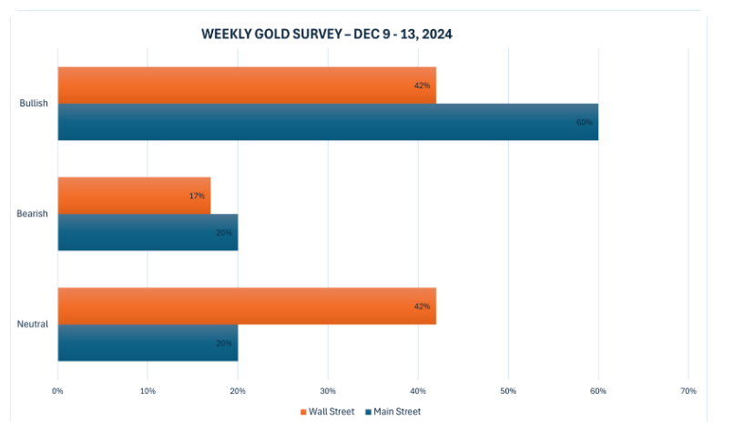 در همین حال، 116 رای در نظرسنجی آنلاین کیتکو به صندوق ریخته شد که مین استریت پس از عملکرد مقاوم این هفته، بار دیگر به فلز زرد گرم شد. 70 تاجر خردهفروشی یا 60 درصد به دنبال افزایش قیمت طلا در هفته آینده بودند، در حالی که 23 یا 20 درصد دیگر انتظار داشتند که فلز زرد کاهش یابد. 23 سرمایه گذار باقی مانده، که 20 درصد از کل را تشکیل می دهند، انتظار داشتند روند جانبی طلا در کوتاه مدت ادامه یابد.