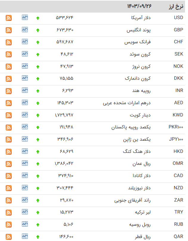 نرخ ارز در بازارهای مختلف 26 آذرماه/ تداوم گرانی قیمت دلار و یورو