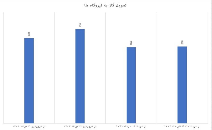 براساس اطلاعات شرکت ملی گاز ایران در فرودین تا مرداد سال ۱۴۰۱ حدود ۲۳۰ میلیون متر مکعب گاز به نیروگاهها تحویل داده شده است و این رقم در ماه مشابه سال ۱۴۰۳ به عدد ۲۵۵ میلیون متر مکعب رسیده است.