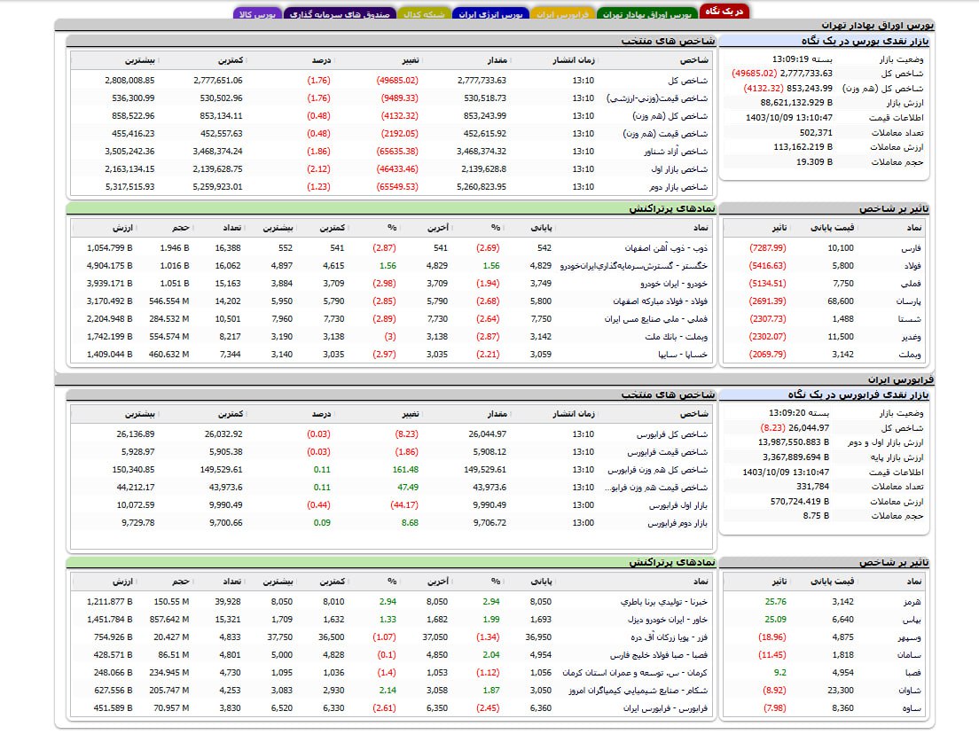 فارس و فولاد و فملی بیشترین تاثیر منفی را بر شاخص بورس داشتند. از نمادهای پرتراکنش نیز میتوان به ذوب، خگستر و خودرو اشاره کرد.