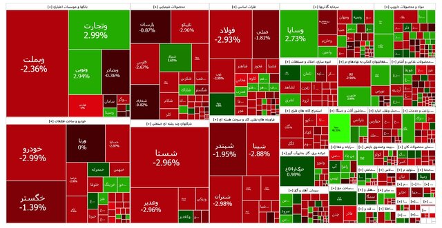فارس، فولاد و فملی بیشترین تاثیر منفی را بر شاخص بورس داشتند. از نمادهای پرتراکنش نیز می‌توان به شستا، وبملت و بپویا اشاره کرد.