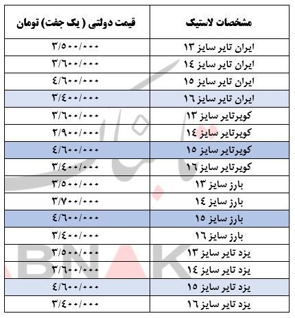 قیمت لاستیک با نرخ دولتی اعلام شد + جدول