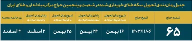 متقاضیان جهت دریافت سکه، به جدول زمانی تحویل سکه توجه داشته باشند. زمان تحویل بدون هزینه انبارداری سکه طلا، در بازه زمانی ۱۶ الی ۲۴ بهمنماه است؛ طی این دوره فقط هزینه تحویل از سوی شعب بانک عامل دریافت میشود. هزینه تحویل ۳۰ هزار تومان به ازای هر سکه برای کل دوره خواهد بود.
