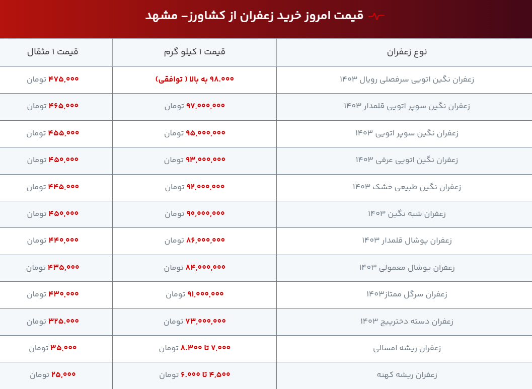 یک کیلو زعفران چند؟ + جدول
