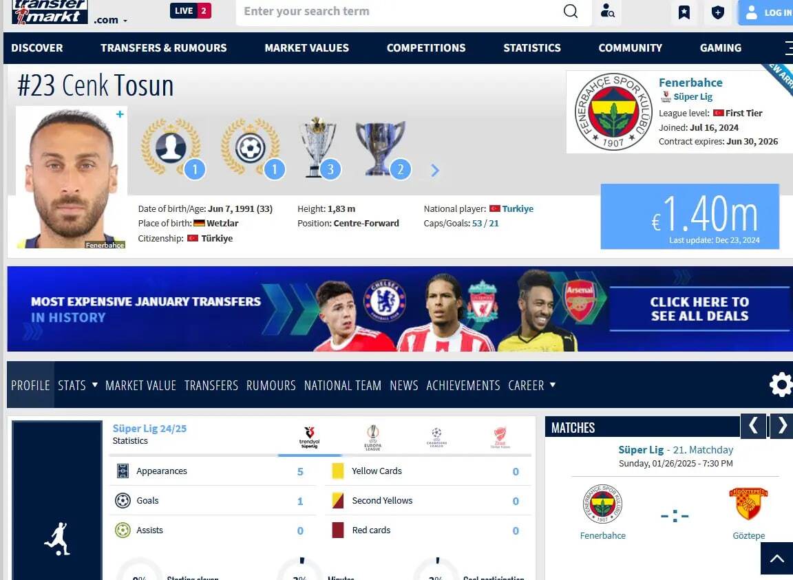 چنک توسون تنها مهاجم آلمانی - ترکیه شاخصی به حساب می آید که عضو تیم فنرباغچه بوده و در فصل منجر به نایب قهرمانی این تیم، زیر نظر کارتال بازی میکرد. توسون البته این فصل در ترکیب فنرباغچه حضور ممتدی نداشت و در سه بازی خود فقط یک گل به ثمر رساند.