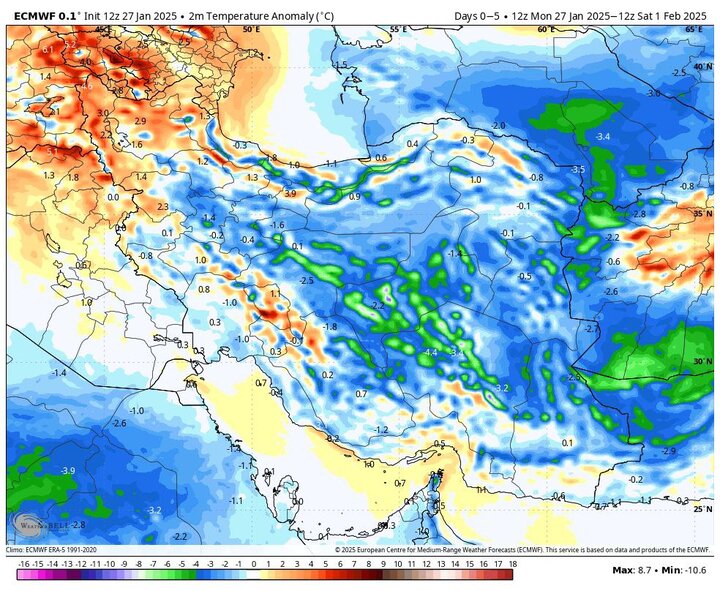 رئیس مرکز پیش‌بینی و مدیریت بحران مخاطرات وضع هوا در پایان گفت: آسمان تهران امروز (۱۰ بهمن‌) صاف گاهی وزش باد ملایم با حداقل دمای صفر و حداکثر دمای ۸ درجه سانتیگراد پیش‌بینی می‌شود.