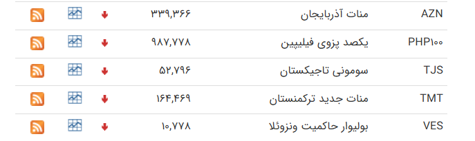 | یوان چین | CNY | ۹۴,۰۱۹ | ۹۴,۸۷۳ | -۲۲ | ۹۱,۴۵۸ | ۹۲,۲۸۹ | -۲۲ |
