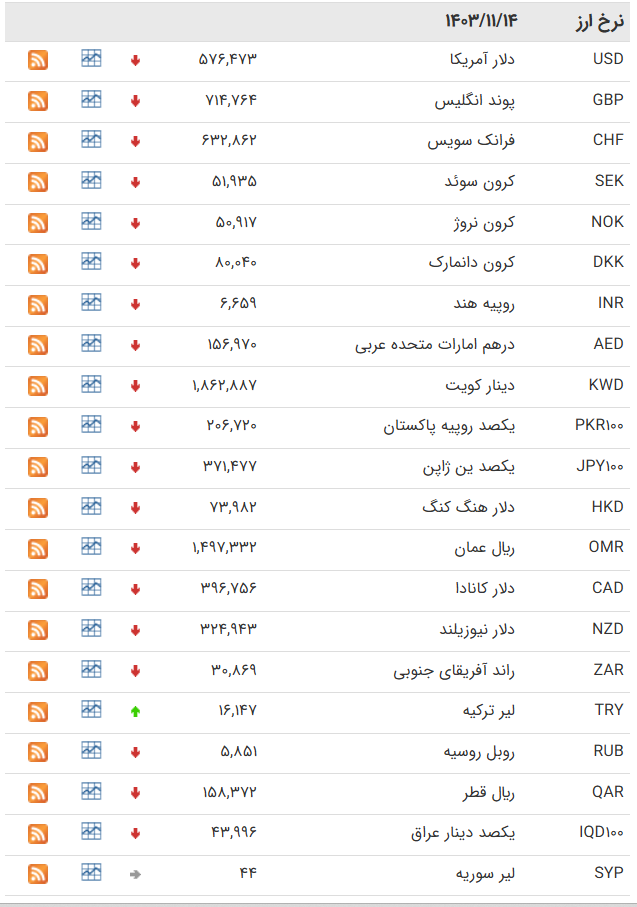 | کرون سوئد | SEK | ۶۱,۶۰۶ | ۶۲,۱۶۵ | -۷۴ | ۵۹,۹۲۸ | ۶۰,۴۷۲ | -۷۲ |